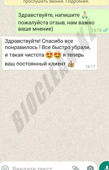 Клининговая компания «BioClean» оказывает услуги по профессиональной уборке квартир, домов, коттеджей, бизнес-центров, а также зданий административного и производственного назначения. Также занимаемся химчисткой мягкой мебели и ковров на дому.